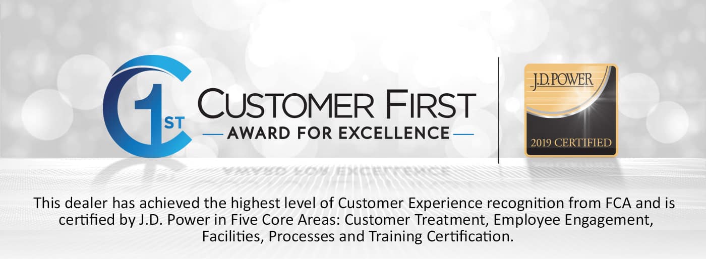 Tom O'Brien Chrysler Jeep Dodge Ram is excited to announce that we are a 2019 recipient of the Customer First Award for Excellence! A Customer First Award recipient represents the dealers who have achieved the highest level of customer experience in five areas: Performance Measures, Process Validation, Employee Engagement, Training, and Facility Certification. Tom O'Brien Chrysler Jeep Dodge Ram - Greenwood is the only dealership in central Indiana to have earned this award. We are committed to providing exceptional customer service, and we are proud to be recognized for it.