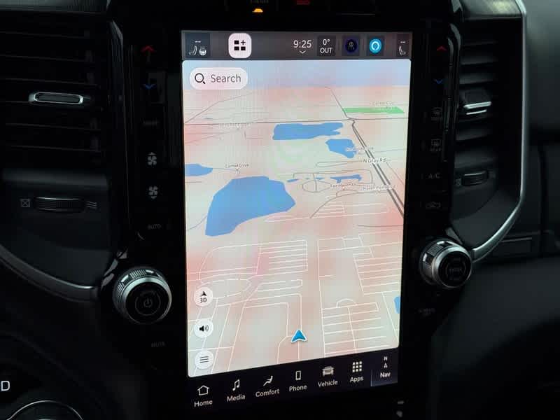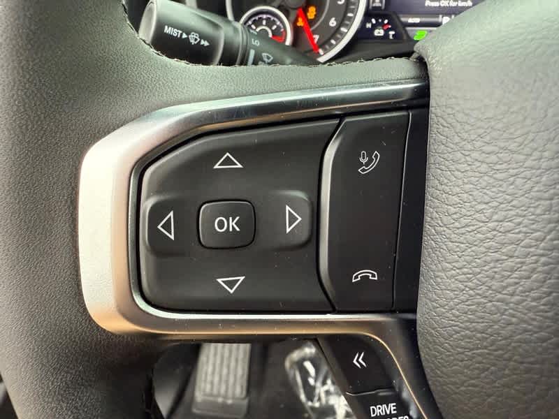 BIG HORN LEVEL 2 EQUIPMENT GROUP SiriusXM Radio Service, Power Adjustable Pedals, Leather Wrapped Steering Wheel, 12 Touchscreen Display, Glove Box Lamp, Auto Power-Folding Mirrors, 115V Auxiliary Rear Power Outlet, Media Hub w/2 Charge Only USBs, Heated Front Seats, Security Alarm, Black Premium Power Mirrors, Premium Overhead Console, 9 Amplified Speakers w/Subwoofer, Disassociated Touchscreen Display, Body Color Fender Flares, Remote Tailgate Release, 115V Auxiliary Power Outlet, LED Dome Lamp w/On/Off Switch, Universal Garage Door Opener, 2nd Row In Floor Storage Bins, Sun Visors w/Illuminated Vanity Mirrors, LED Footwell Lighting, Rear Window Defroster, Rear View Auto Dim Mirror, Rear Power Sliding Window, GPS Navigation, Overhead LED Lamps, Wheels: 20 x 9 Aluminum Chrome Clad, ENGINE: 3.0L I6 HURRICANE SO TWIN TURBO ESS Aux Battery, 700 Amp Maintenance Free Battery, Active Noise Control System, GVWR: 7,100 lbs, 3.55 Rear Axle Ratio, Dual Rear Exhaust w/Bright Tips, Start-Stop Dual Battery System, 230 Amp Alternator, NIGHT EDITION Tires: 275/55R20 OWL All Season, Bridgestone Brand Tires, Accent Color Premium Power Mirrors, Exterior Mirrors w/Supplemental Signals, Black Headlamp Bezels, Exterior Mirrors Courtesy Lamps, Grille Black Surround Black Mesh, Auto Power-Folding Mirrors, Wheels: 20 x 9.0 Aluminum Painted Clad, Auto Dim Exterior Driver Mirror, Black Exterior Truck Badging, Anti-Spin Differential Rear Axle, Accent Color Door Handles, Accent Color Tailgate Handle, Black Interior Accents, Dual Exhaust w/Black Tips, Body Color Front Bumper, Body Color Rear Bumper w/Step Pads, Black Tail Lamp Bezels, RAM Grille Badge - Black, Black Painted Exterior Mirrors Caps, MOPAR BLACK TUBULAR SIDE STEPS, MOPAR FRONT & REAR RUBBER FLOOR MATS, TRANSMISSION: 8-SPEED AUTOMATIC (8HP75). Ram Big Horn with Canyon Lake exterior and Black interior features a Straight 6 Cylinder Engine with 305 HP at 6400 RPM*.