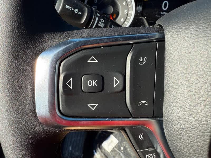 BIG HORN LEVEL 2 EQUIPMENT GROUP SiriusXM Radio Service, Power Adjustable Pedals, Leather Wrapped Steering Wheel, 12 Touchscreen Display, Glove Box Lamp, Auto Power-Folding Mirrors, 115V Auxiliary Rear Power Outlet, Media Hub w/2 Charge Only USBs, Heated Front Seats, Security Alarm, Black Premium Power Mirrors, Premium Overhead Console, 9 Amplified Speakers w/Subwoofer, Disassociated Touchscreen Display, Body Color Fender Flares, Remote Tailgate Release, 115V Auxiliary Power Outlet, LED Dome Lamp w/On/Off Switch, Universal Garage Door Opener, 2nd Row In Floor Storage Bins, Sun Visors w/Illuminated Vanity Mirrors, LED Footwell Lighting, Rear Window Defroster, Rear View Auto Dim Mirror, Rear Power Sliding Window, GPS Navigation, Overhead LED Lamps, Wheels: 20 x 9 Aluminum Chrome Clad, ENGINE: 5.7L V8 HEMI MDS VVT ETORQUE Active Noise Control System, Heavy Duty Engine Cooling, Passive Tuned Mass Damper, GVWR: 7,100 lbs, Dual Rear Exhaust w/Bright Tips, G/T Exhaust, 18 Aluminum Spare Wheel, DUAL-PANE PANORAMIC SUNROOF Dome Dual LED Reading Lamp, NIGHT EDITION Tires: 275/55R20 OWL All Season, Bridgestone Brand Tires, Accent Color Premium Power Mirrors, Exterior Mirrors w/Supplemental Signals, Black Headlamp Bezels, Exterior Mirrors Courtesy Lamps, Grille Black Surround Black Mesh, Auto Power-Folding Mirrors, Wheels: 20 x 9.0 Aluminum Painted Clad, Auto Dim Exterior Driver Mirror, Black Exterior Truck Badging, Anti-Spin Differential Rear Axle, Accent Color Door Handles, Accent Color Tailgate Handle, Black Interior Accents, Dual Exhaust w/Black Tips, Body Color Front Bumper, Body Color Rear Bumper w/Step Pads, Black Tail Lamp Bezels, RAM Grille Badge - Black, Black Painted Exterior Mirrors Caps, SURROUND VIEW CAMERA SYSTEM 12-Way/1-Way Trailer Connector, MOPAR FRONT & REAR RUBBER FLOOR MATS, TRANSMISSION: 8-SPEED AUTOMATIC (8HP75). Ram Big Horn with Bright White Clearcoat exterior and Black interior features a 8 Cylinder Engine with 395 HP at 5600 RPM*.