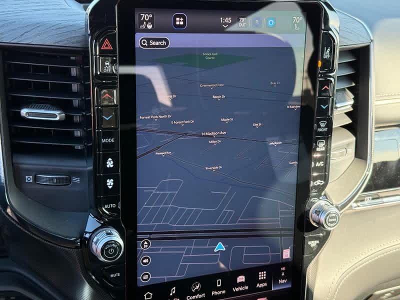 LIMITED LEVEL A EQUIPMENT GROUP Surround View Camera System, LED CHMSL Lamp, Tri-Fold Tonneau Cover, Traffic Sign Recognition, RamBox Cargo Management System, Hands-Free Active Driving Assist System, Head Up Display, Evasive Steer Assist, Drowsy Driver Detection, Exterior 115V AC Outlet, Intersection Collision Assist System, Smartphone As A Key Capable, 14.4 Touchscreen Display, Radio: Uconnect 5 Nav w/14.4 Display, 240 Amp Alternator, 12-Way/1-Way Trailer Connector, NIGHT EDITION Tires: 285/45R22XL BSW All Season, Black Headlamp Bezels, Wheels: 22 x 9 Premium Black Aluminum, Pirelli Brand Tires, Accent Color Door Handles, Body Color Front Bumper, Body Color Rear Bumper w/Step Pads, RAM Grille Badge - Black, Black Painted Exterior Mirrors Caps, Accent Color Premium Power Mirrors, Sport Performance Hood, Black Exterior Truck Badging, Black Day Light Opening Moldings, Accent Color Tailgate Handle, Dual Exhaust w/Black Tips, Black Grille Surround Texture 7 Black, Black Tail Lamp Bezels, TRANSMISSION: 8-SPEED AUTOMATIC (8HP75) (STD), ENGINE: 3.0L I6 HURRICANE HO TWIN TURBO ESS (STD). Ram Limited with Diamond Black Crystal Pearlcoat exterior and Black interior features a Straight 6 Cylinder Engine.