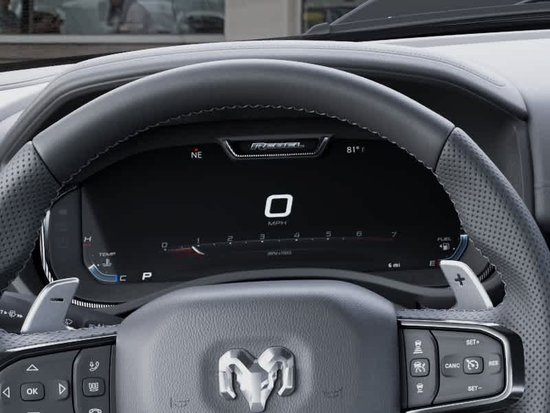 G/T PACKAGE Floor Console, Under Seat Lighting, G/T Decal, Leather Wrapped Shift Knob, Leather-Wrapped Steering Wheel, Steering Wheel Mounted Shift Control, G/T Exhaust, GT Interior Theme, MOPAR Bright Pedal Kit, Performance Pages, REBEL LEVEL 2 EQUIPMENT GROUP Power Adjustable Pedals w/Memory, Front Passenger Interactive Display, Power 2-Way Passenger Lumbar Adjust, Auto Power-Folding Mirrors, 115V Auxiliary Rear Power Outlet, Media Hub w/2 Charge Only USBs, Proximity Approach/Departure Lamps, Power Adjust 8-Way Front Passenger Seat, Security Alarm, Dual Wireless Charging Pad, harman/kardon® 19 Speaker Premium Sound, Rear Window Defroster, Rain Sensitive Windshield Wipers, Auto Dim Exterior Driver Mirror, Accent Color Door Handles, Heated Second Row Seats, Black Painted Exterior Mirrors Caps, Exterior Mirrors Approach Lamps, Smartphone As A Key Capable, 14.4 Touchscreen Display, Accent Color Premium Power Mirrors, Exterior Mirrors w/Supplemental Signals, Exterior Mirrors Courtesy Lamps, Radio: Uconnect 5 Nav w/14.4, DUAL-PANE PANORAMIC SUNROOF Dome Dual LED Reading Lamp, TRI-FOLD TONNEAU COVER, MOPAR BLACK TUBULAR SIDE STEPS, BED UTILITY GROUP MOPAR Spray In Bedliner, MOPAR 4 Adjustable Cargo Tie-Down Hooks, Exterior 115V AC Outlet, TRANSMISSION: 8-SPEED AUTOMATIC (8HP75) (STD). Ram Rebel with Diamond Black Crystal Pearlcoat exterior and Black interior features a Straight 6 Cylinder Engine with 420 HP at 5200 RPM*.