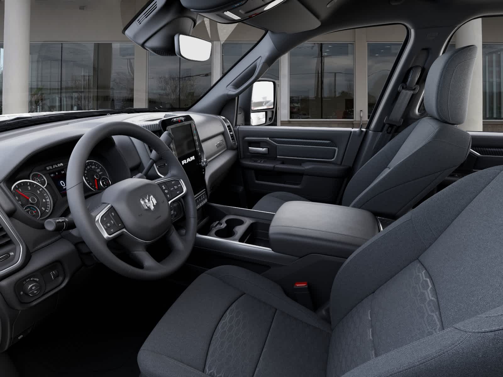 BIG HORN LEVEL 1 PLUS EQUIPMENT GROUP Emergency Vehicle Alert System (EVAS), 12 Touchscreen Display, Glove Box Lamp, Auto Power-Folding Mirrors, Footwell Courtesy Lamp, Anti-Spin Differential Rear Axle, MOPAR Deployable Bed Step, Alexa Built-In, Forward & Reverse Utility Lights, Locking Lower Glove Box, Remote Start System, 9 Alpine Speakers w/Subwoofer, Disassociated Touchscreen Display, Dual Glove Boxes, 2nd Row In Floor Storage Bins, Rear View Auto Dim Mirror, Rear Dome w/On/Off Switch Lamp, LED Bed Lighting, GPS Navigation, SiriusXM w/360L, Connected Travel & Traffic Services, Foam Bottle Insert (Door Trim Panel), Big Horn IP Badge, Off-Road Info Pages, Trailer Tow Pages, HD Radio, Radio: Uconnect 5 Nav w/12.0 Display, Power Heated Folding Telescopic Mirrors, Steering Wheel Mounted, NIGHT EDITION Gloss Black Nostrils/Mic Black Grille, Tires: LT285/60R20E OWL On/Off Road, Black Exterior Truck Badging, Wheels: 20 x 8.0 Black Painted Aluminum, Body Color Grille-Surround, Black Interior Accents, Black Wheel Center Hub, Painted Front Bumper, Painted Rear Bumper, PAINTED FLAT WHEEL-TO-WHEEL SIDE STEPS, HEATED SEATS & WHEEL GROUP Heated Steering Wheel, Heated Front Seats, BLACK, PREMIUM CLOTH BUCKET SEATS Bucket Seats, Power Adjust 8-Way Driver Seat, Folding Flat Load Floor Storage, Rear 60/40 Folding Seat, Front Seat Back Map Pockets, Power 2-Way Driver Lumbar Adjust, Full Length Upgraded Floor Console, TRANSMISSION: 8-SPEED TORQUEFLITE HD AUTOMATIC. Ram Big Horn with Bright White Clearcoat exterior and Black interior features a Straight 6 Cylinder Engine with 405 HP at 5600 RPM*.