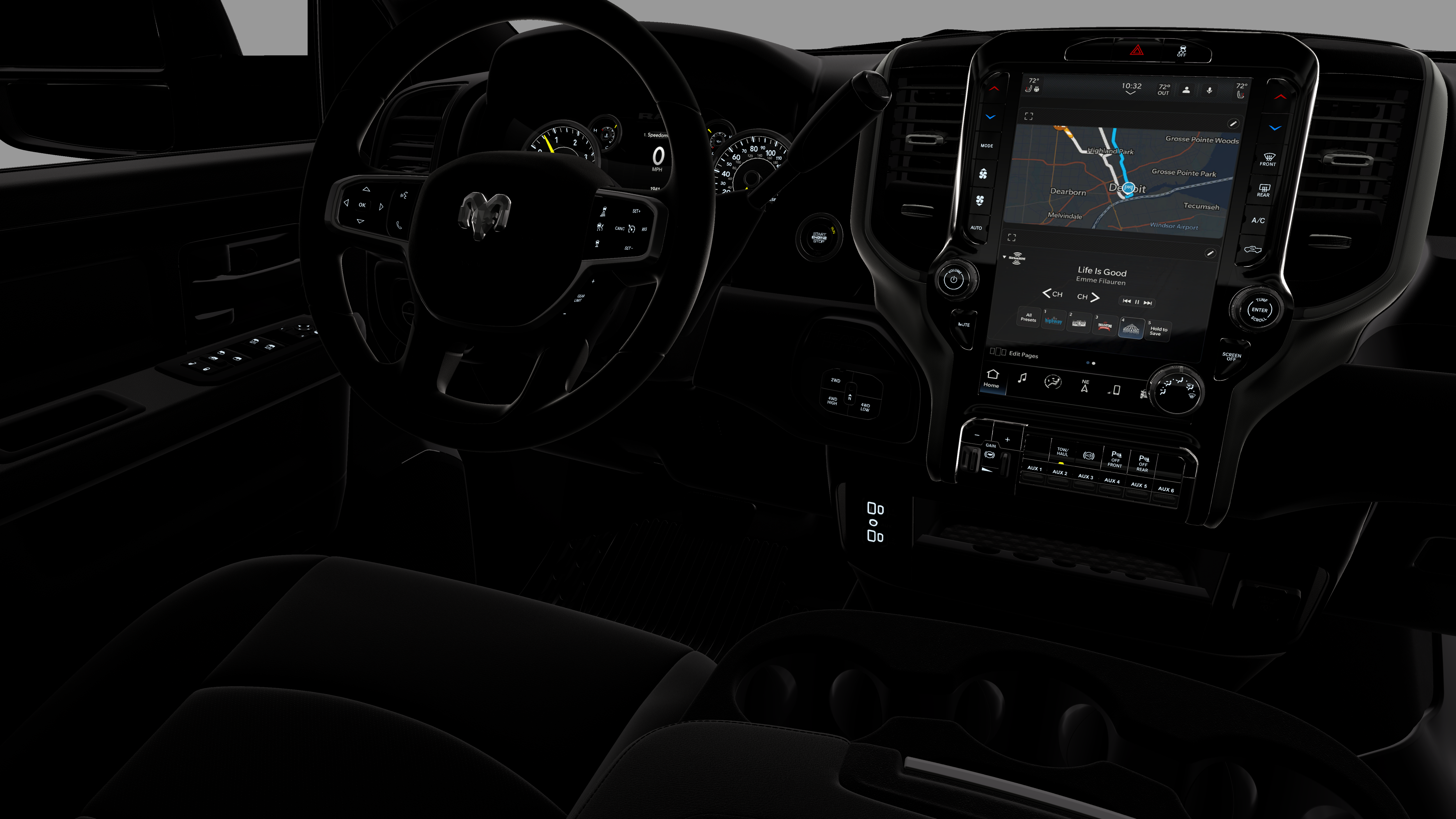 - Radio w/Seek-Scan, Clock, Speed Compensated Volume Control, Aux Audio Input Jack, Voice Activation, Radio Data System and Uconnect External Memory Control