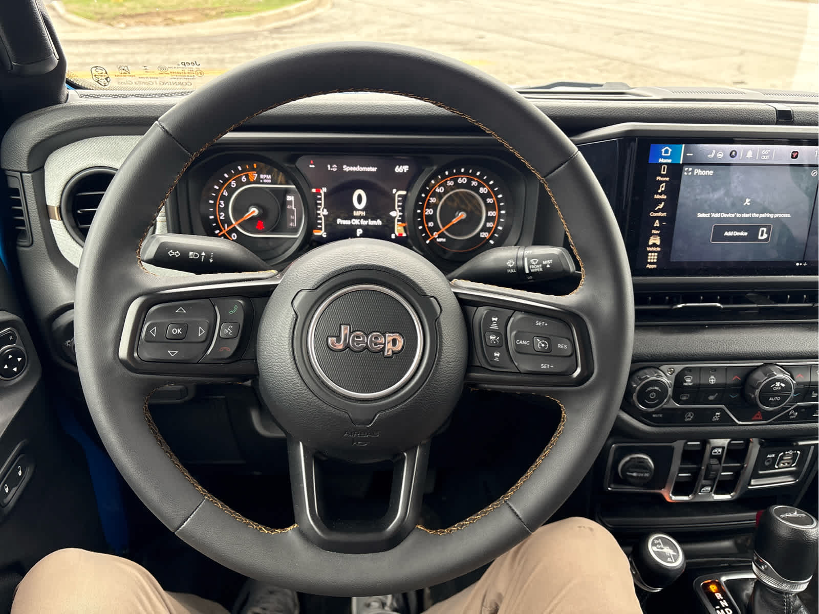QUICK ORDER PACKAGE 24S SPORT S Engine: 3.6L V6 24V VVT UPG I w/ESS, Transmission: 8-Speed Automatic (850RE), Advanced Brake Assist, Speed Sensitive Power Locks, Automatic Headlamps, Deep Tint Sunscreen Windows, Full Speed Forward Collision Warning Plus, Body Color Fender Flares (2-Piece), Front 1-Touch Down Power Windows, Power Heated Mirrors, Daytime Running Lamp System, Enhanced Adaptive Cruise Control, Premium Wrapped Steering Wheel, Security Alarm, Power Tailgate Lock, Sun Visors w/Illuminated Vanity Mirrors, Remote Keyless Entry, TRANSMISSION: 8-SPEED AUTOMATIC (850RE) Adaptive Cruise Control w/Stop, Transmission Skid Plate, Selec-Speed Control, CONVENIENCE GROUP Emergency/Assistance Call, Front Door Locks 2-Door Passive Entry, Remote Start System, Cluster 7.0 TFT Color Display, Universal Garage Door Opener, Heated Front Seats, Air Conditioning w/Auto Temp Control, Heated Steering Wheel, Corning Gorilla Glass, BLACK 3-PIECE HARD TOP Freedom Panel Storage Bag, Rear Window Defroster, Rear Sliding Window, SAFETY GROUP ParkSense Rear Park Assist System, Auto High Beam Headlamp Control, Blind Spot & Cross Path Detection, LED Taillamps, TECHNOLOGY GROUP Rear View Auto Dim Mirror, For Details, Visit DriveUconnect.com, Integrated Voice Command w/Bluetooth®, Emergency Vehicle Alert System (EVAS), GPS Navigation, GPS Antenna Input, Media Hub w/2 Charge Only USBs, Connected Travel & Traffic Services, Alpine Premium Audio System, 400W Inverter, HD Radio, Bluetooth® Wireless Speaker, Radio: Uconnect 5 Nav w/12.3 Display, 240 Amp Alternator, 115V Auxiliary Power Outlet, MOPAR SPRAY IN BEDLINER, ENGINE: 3.6L V6 24V VVT UPG I W/ESS (STD). Jeep Sport S with Hydro Blue Pearlcoat exterior and Black interior features a V6 Cylinder Engine with 285 HP at 6400 RPM*.